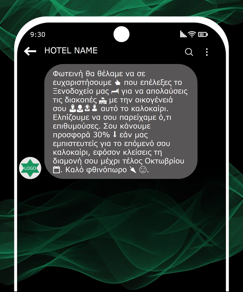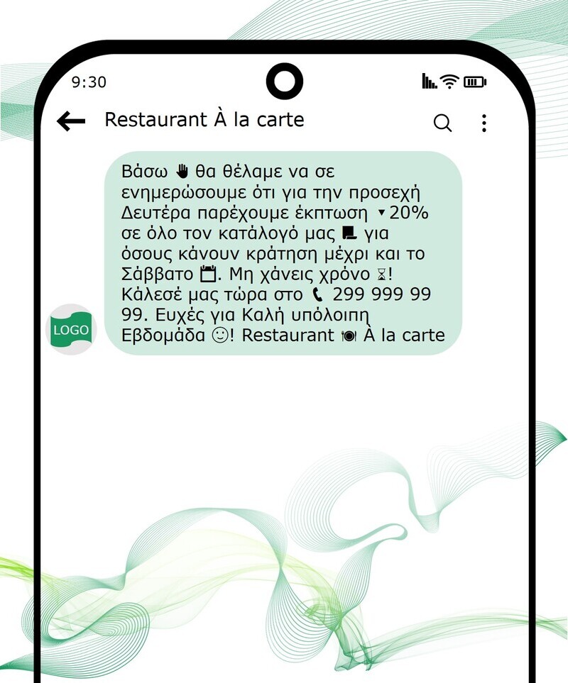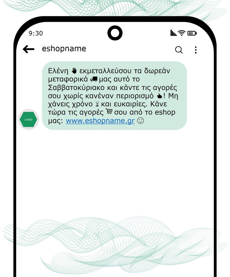 Παραδείγματα SMS Προσφοράς από eshop, Ευχών από Πολιτικό Πρόσωπο, Ενημέρωσης Δήμου για Έργα Οδοποιίας, Αγώνα και Προσφοράς Ομάδας, Ξενοδοχείου, Εστιατορίου, Πανεπιστημίου, Συλλόγου.