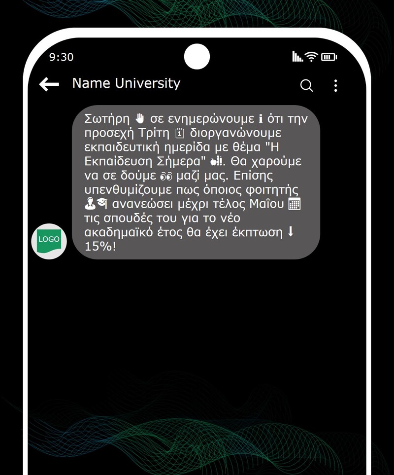 Χωρίς περιορισμό στους χαρακτήρες του SMS 💬, με δυνατότητα αποστολής emojis 😊 αλλά και δυνατότητα εξατομικευμένων μηνυμάτων στον κάθε παραλήπτη.